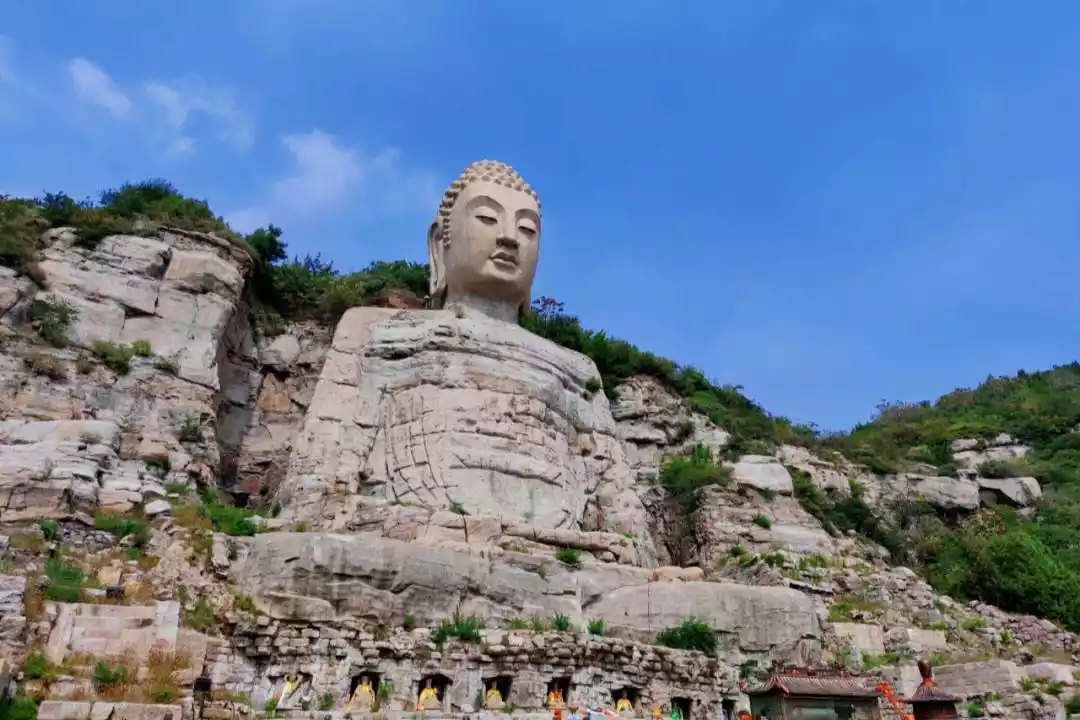 Built during the Tianbao reign of the Northern Qi Dynasty, the site boasts a history of approximately 1,500 years. It is the largest cliff-carved Buddha statue and Buddhist pavilion of the Northern Dynasties period in China. The exposed chest and neck of the Mengshan Buddha are 17.5 meters tall and 25 meters wide, with a neck diameter of 5 meters. Tang Dynasty records indicate a height of "200 feet," equivalent to approximately 63 meters today using Tang Dynasty standard. It is currently the world's oldest and largest cliff-carved Sakyamuni Buddha statue with a precise date.