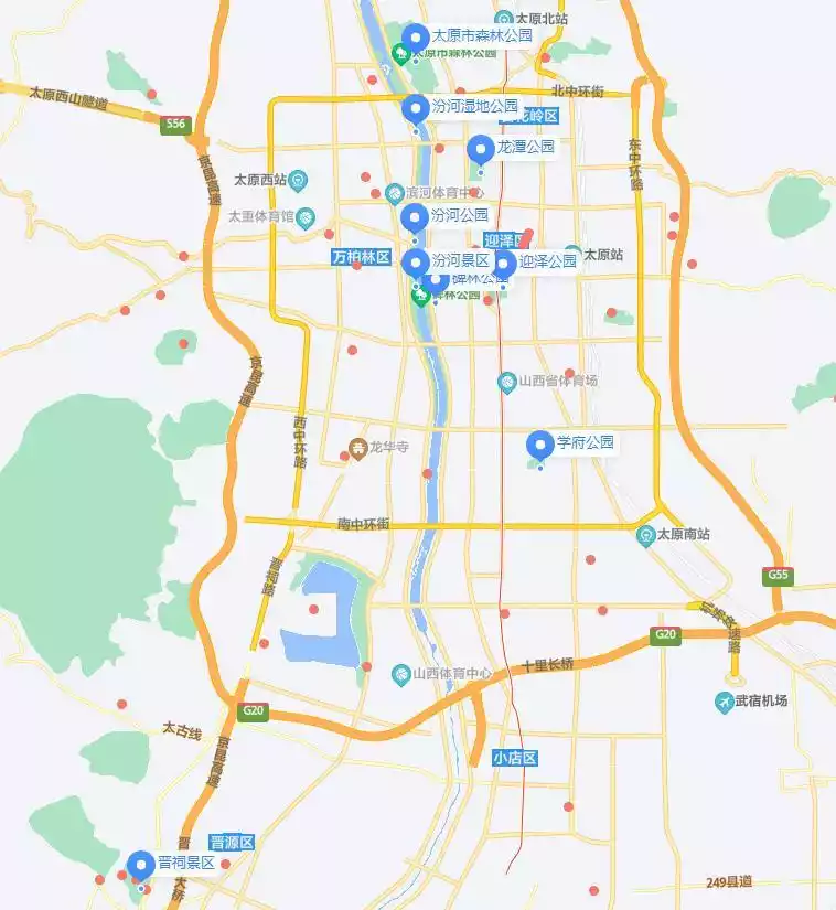 Taiyuan's scenic spots are relatively concentrated, mainly distributed in two areas, one is Yingze Street-Liuxiang Commercial District, and the other is Jinyuan District. Because Jinyuan District is in the suburbs, it is recommended that you stay in Yingze Street-Liuxiang Commercial District, which is only 4 kilometers away from Taiyuan Railway Station. It is very close to Shuangta Temple, Yingze Park, and Coal Museum, and there are many hotels of all grades. It is also close to the Liuxiang Food District. Basically, all the time-honored brands in Taiyuan are in this area!