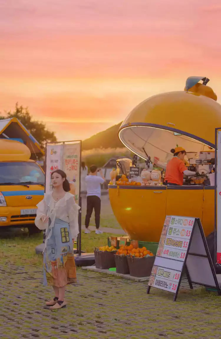 When we drove down the mountain and left Xinxingyue, we happened to meet a cute orange car at the corner. At this time, the afterglow of the sunset had dyed the sky into layers of orange, and tourists also raised their cameras to take in the beautiful scenery. We couldn't help but stop and ordered some sour and sweet orange juice, watching the sunset slowly set. How I wish time would freeze at this moment.