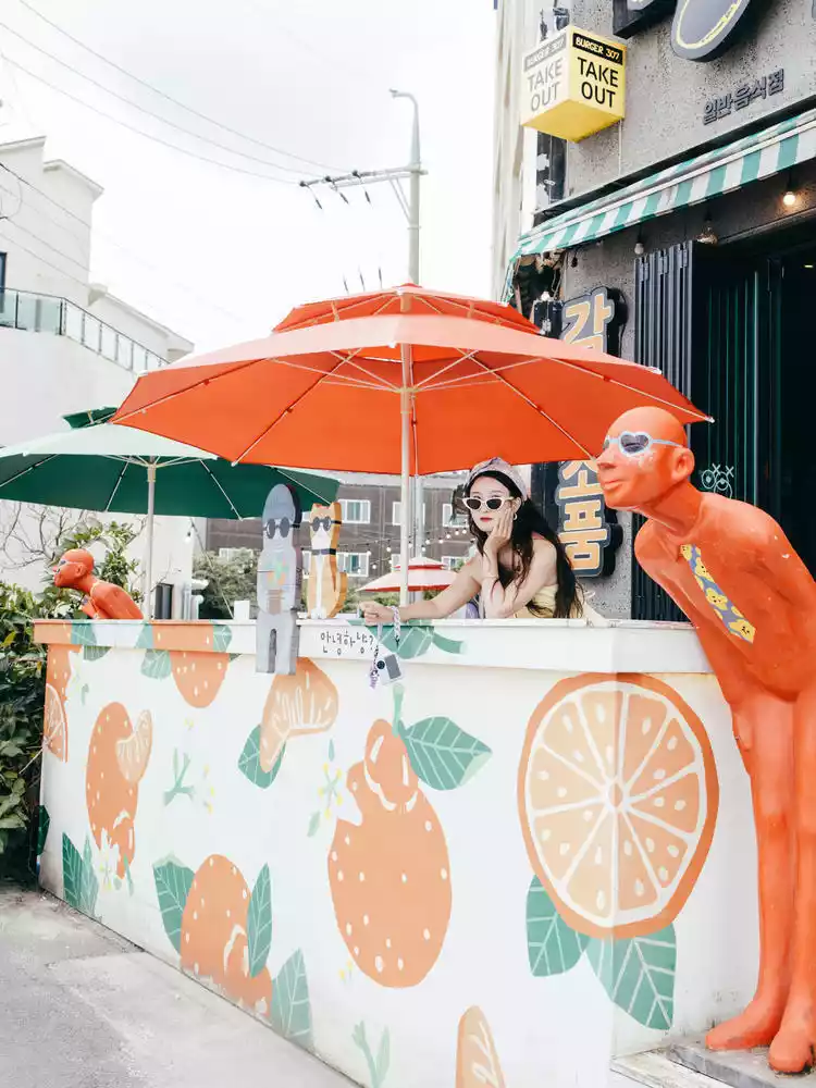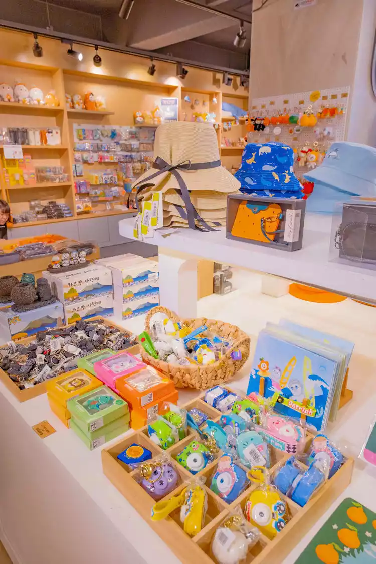 The shop's decor is like a giant spilled orange juice! The orange hue creates a warm and sweet feeling while browsing, which really makes you feel good! They also have a variety of clothing, accessories, refrigerator magnets, postcards, keychains, music boxes, aromatherapy diffusers, sticky notes, and other small items. There's also the limited edition "Stone Grandpa and Stone Grandma" Black Reef figurines, which were so cute throughout my trip! They're just so adorable! It really touched my heart, and I spent 100,000 Korean won and couldn't stop.