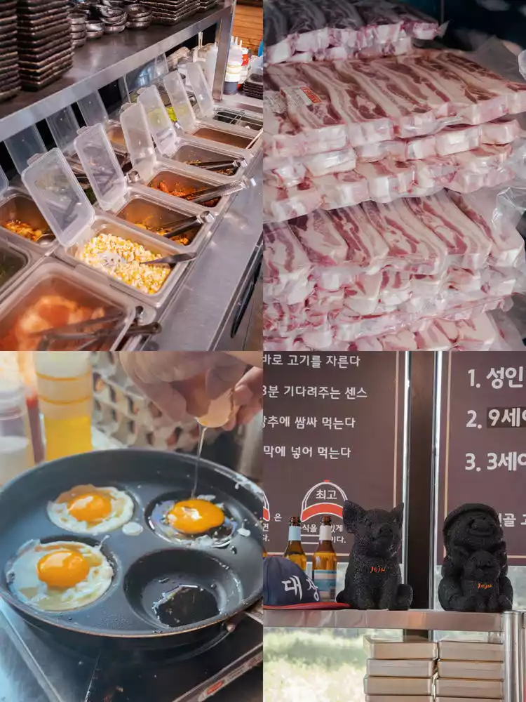 Jeju Island's black pork goes through a fermentation process before being served. The time, temperature, humidity and other conditions are set in advance. Coupled with Jeju Island's natural, pollution-free environment and beautiful scenery, it can be said that every pig is a happy pig~ Hahaha
