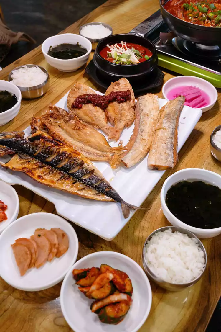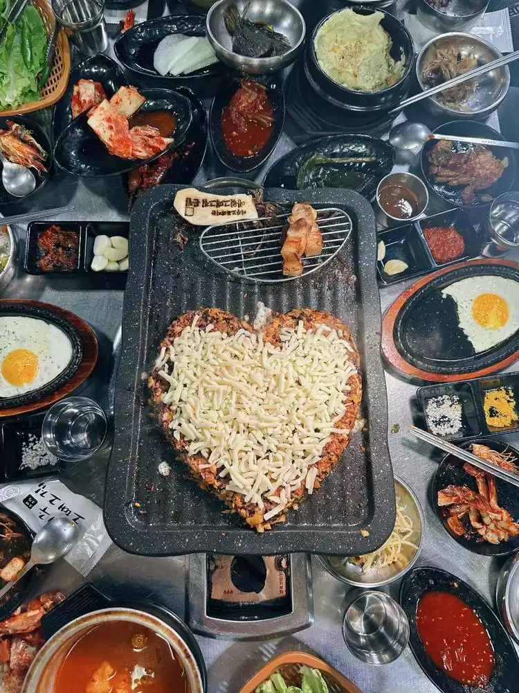Korean romance is truly everywhere. Even the grilled fish was presented in a heart shape. The fish was very fresh. In addition to the grilled fish, there was also a spicy mackerel hot pot. The buffet side dishes were more than enough for the five of us. We ordered the grilled fish + hot pot set meal, and the price per person was less than a hundred yuan, which is very cost-effective.