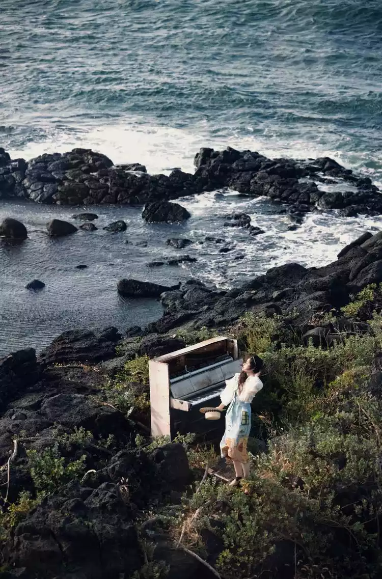 There are large volcanic rock reefs and a piano on the beach in the backyard of the cafe. The aerial photos taken from the 3rd floor are very good, and the "end of the world" apocalyptic style is easily captured.