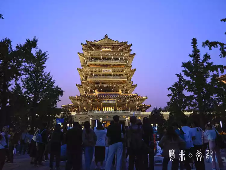 Waiting for the lights to turn on beneath the Chaoran Tower, a newly popular online check-in spot with over 700 years of history. Daming Lake offers not only a place to explore the past but also a place to explore the present. Thanks to the popularity of short videos, the Chaoran Tower's light-up moment has become a new internet sensation. Consequently, countless young people await the lighting moment beneath the 700-year-old building, capturing it with their phones and their own beautiful images in front of it. Next to the building, the youthful Chaoran Market has also opened.