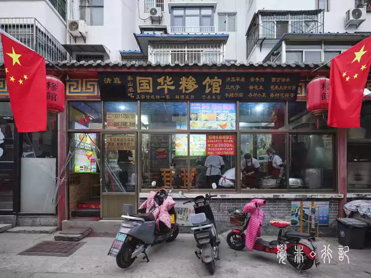 Besides the main course meals, breakfast in Tai'an is also quite unique. At Guohua Noodle House, a local favorite, you can enjoy a full meal for just 4 yuan for noodle soup and 4 yuan for noodles. If you want meat, it's 5 yuan per plate, pay after you finish. You can eat as much as you want, but don't waste it, or the owner will get angry.