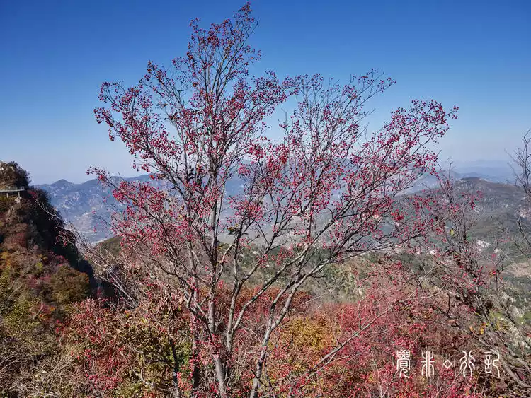It is late autumn, and the mountain ash trees on Tianmeng Mountain are in full bloom. From Wanghai Tower to the suspension bridge, walking along the top of the mountain, you can see northern red beans hanging on the branches, making the whole mountain romantic.
