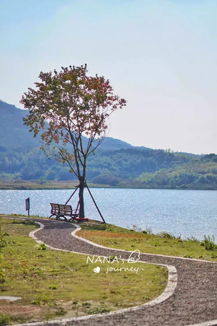The trail on one side is a fun mountain adventure, while the trail we took leads to a local park with a camping and barbecue area, a pier for boating, and a carp dam that looks like a carp from the air. Of course, the carp dam also serves as a water conservancy project.