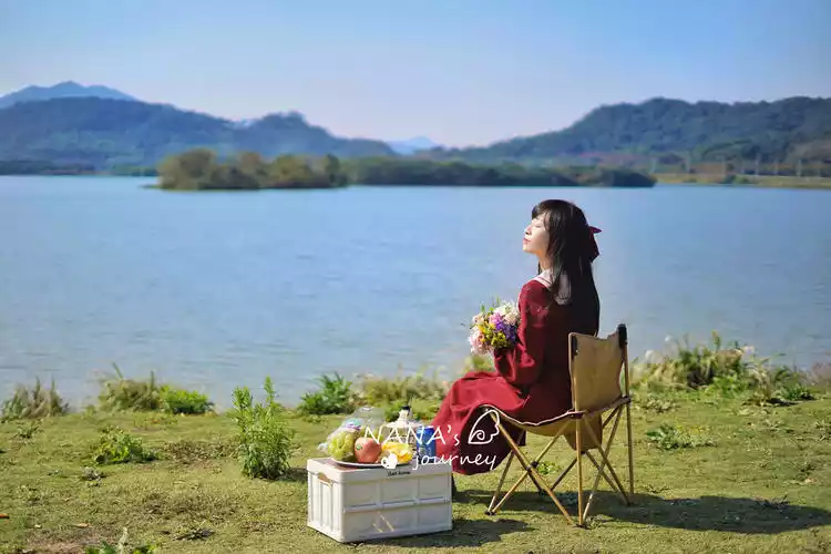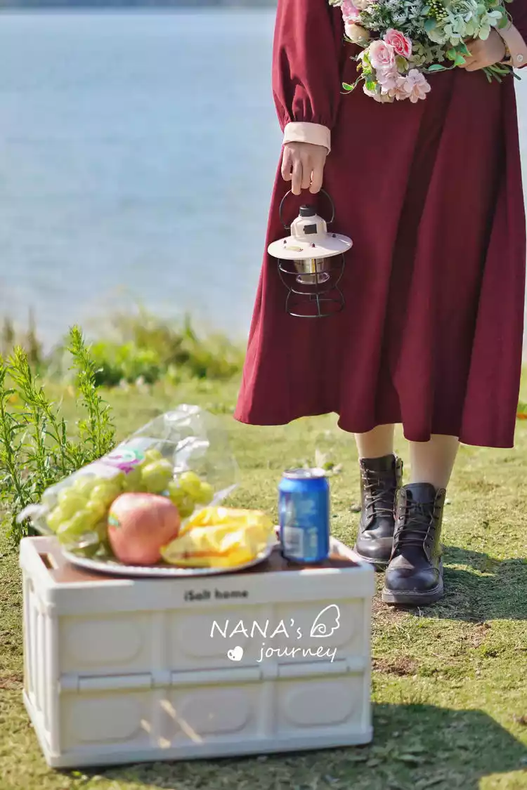 We didn't crowd the campground, but instead found a patch of grass by the lake and took out the fruit snacks we'd prepared long ago. The autumn camping weather was just right, and it was so comfortable—every minute was a joy.