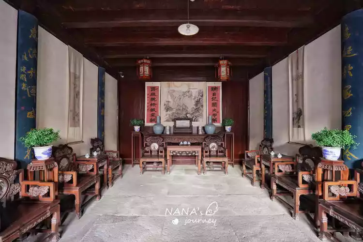 The corridor is not long and is decorated with lanterns. The exquisiteness of Jiangnan is reflected in every detail of the house. Below the corridor is the inner courtyard of the house. Although the former residence is not large, it is really exquisite.