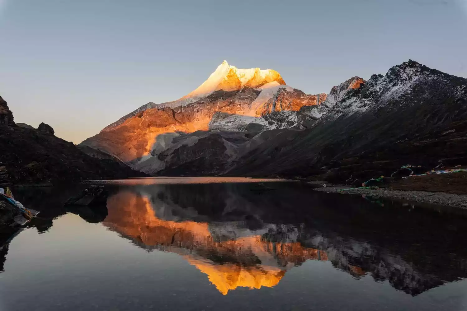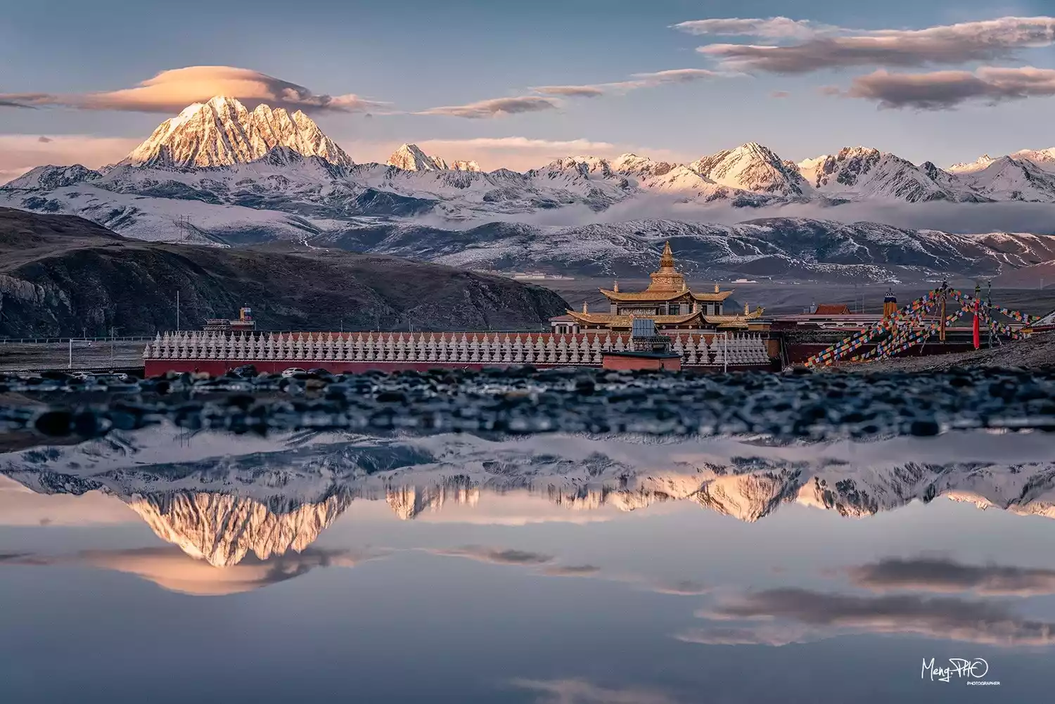 🔸Viewing spots: The bridge on the outer lake of Sap Mountain, the edge of the glacier on the inner lake, the temple on the right mountain, and the bridge on the inner lake