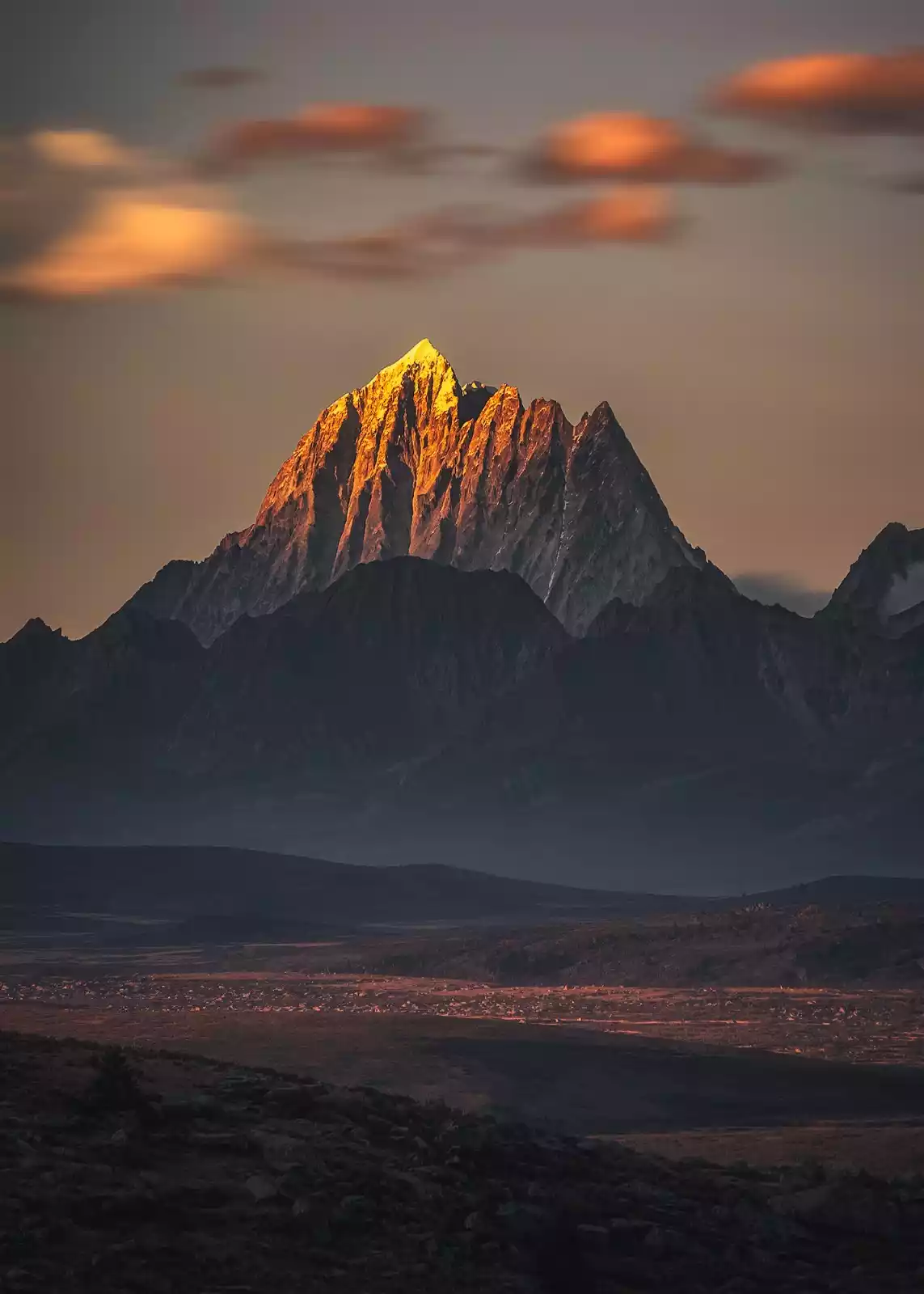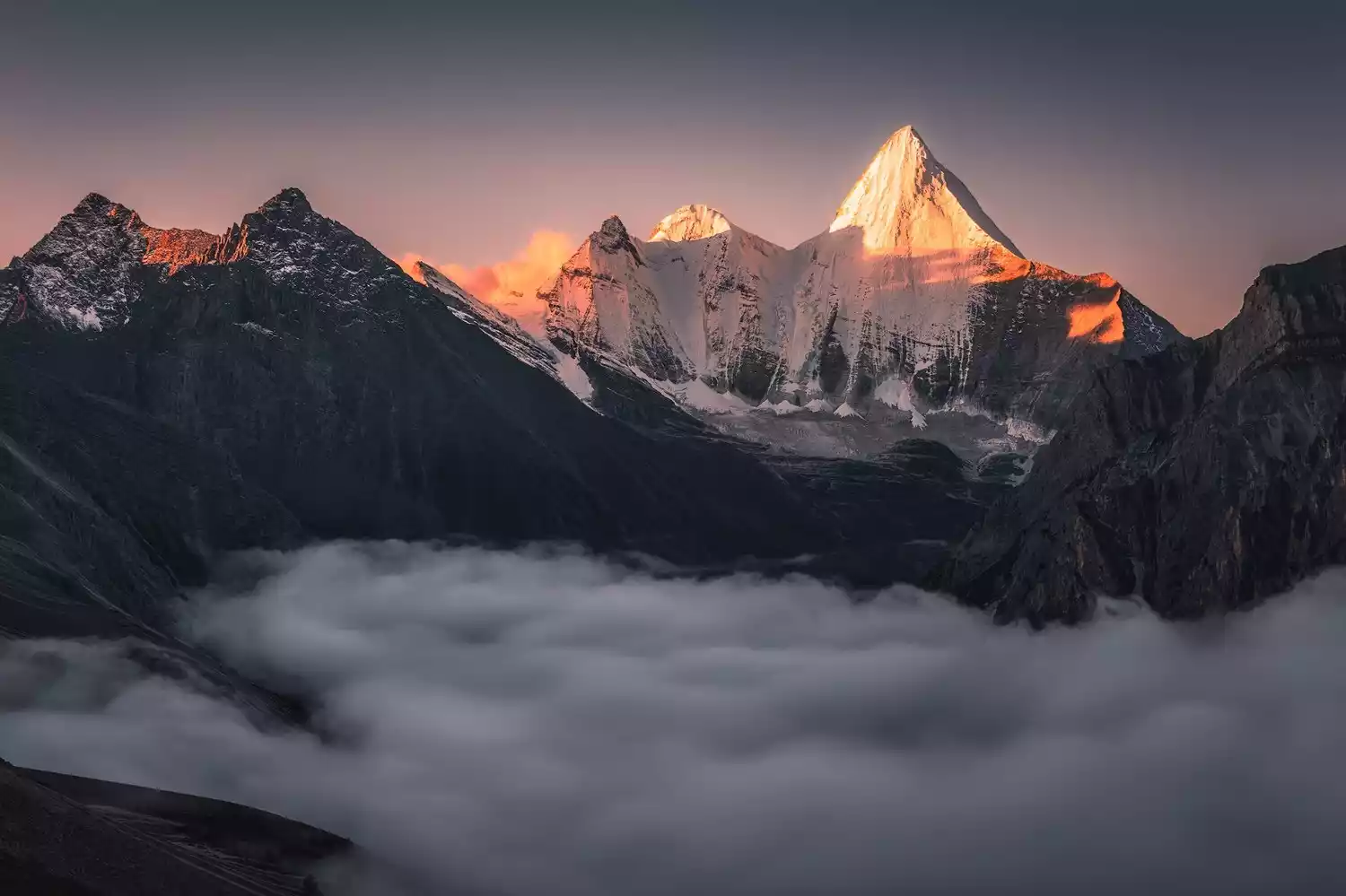 Kulagangri is known as one of the "Four Sacred Mountains" in central Tibet. It stands 7,538 meters above sea level on the main ridge of the middle Himalayas. There are six peaks over 7,000 meters standing next to Kulagangri. From a distance, it looks magnificent and endless. From a close distance, it is full of pressure and shocking.
