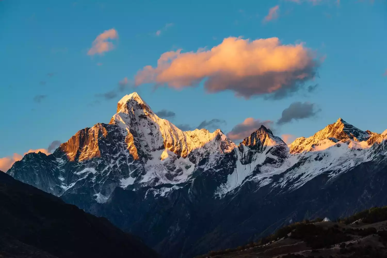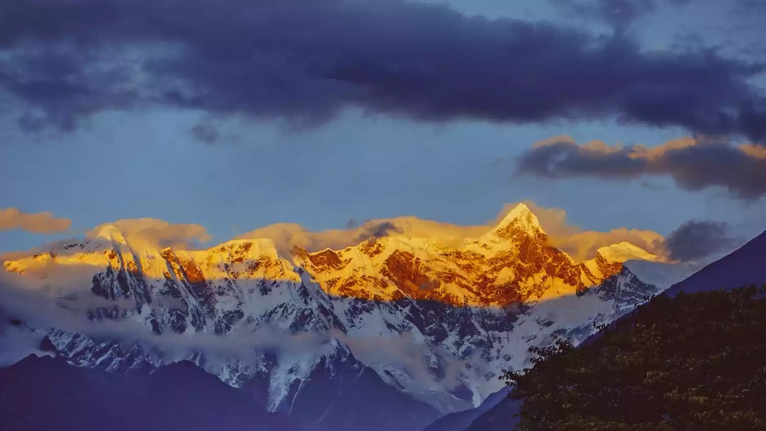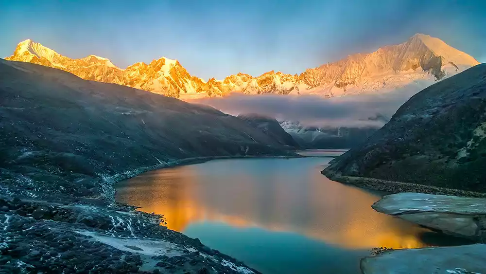 It's said that seeing the Sun Shining over Golden Mountain brings a year's worth of good luck! When the clouds part and the brilliant sunlight shines on the peak, the sacred snow-capped mountains are ablaze with splendor, their gilded peaks awe-inspiring and majestic. This is the sacred phenomenon of "Sun Shining over Golden Mountain"!