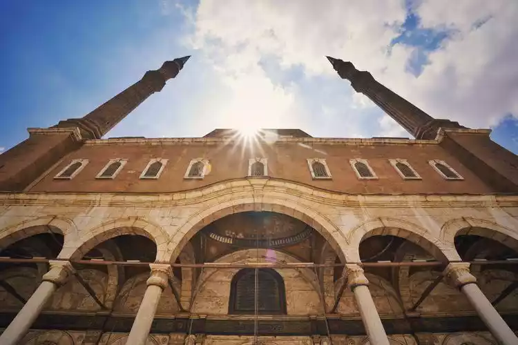 The spot where Cairo and the Pyramids are photographed together is a famous attraction in its own right. The citadel, located on a hill east of Cairo, was built by Saladin in the 12th century to resist the invasion of the Crusaders. The Ali Mosque, built on the citadel by later rulers, is modeled after the mosques in Istanbul and features a Turkish style.