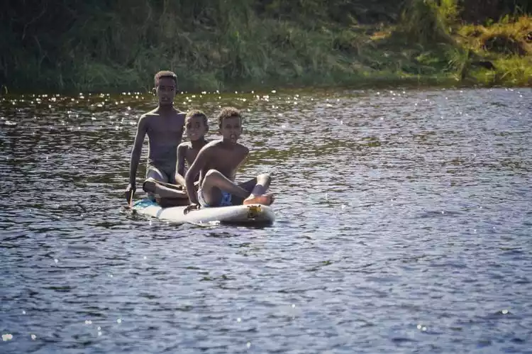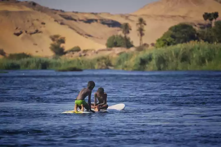 What's more interesting is that on the boat to the Philae Temple, we met a group of Nubian kids who were very good at paddleboarding. They could perform all kinds of front flips and back flips and dives. Of course, their purpose was to ask for money from the tourists on the boat. In fact, you can prepare some snacks and cooling oil for them. If you want to take pictures, you can use high-speed continuous shooting to freeze the frame. Generally, you can capture it as long as the shutter speed is above 1/1000, and a medium focal length lens will be enough.