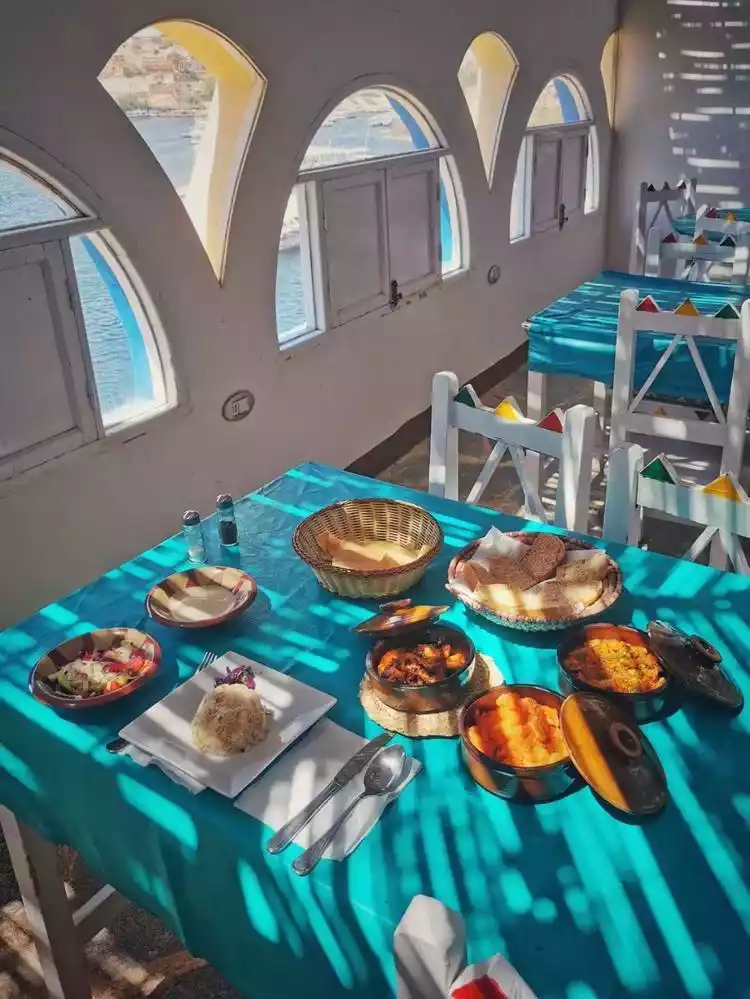 I really like this Nubian-run restaurant on a small island in the Nile, which has a special boat shuttle. It seems that the Nubians understand light. I would like to call it a "ceiling of light and shadow."