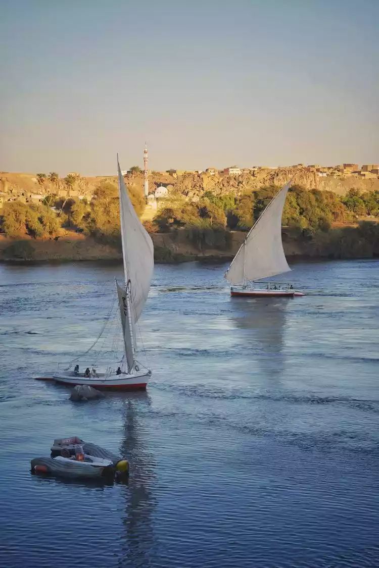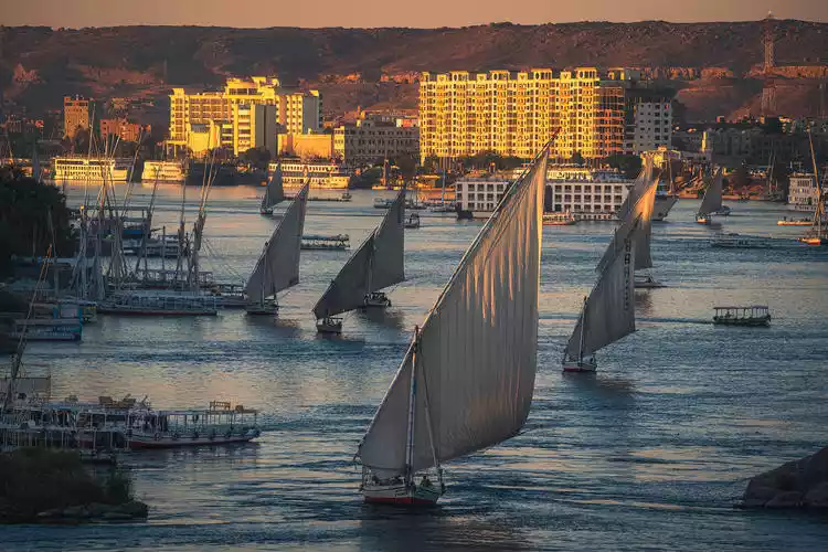 Aswan is widely considered the most picturesque section of the Nile, and its felucca is a must-see. Sunset is particularly breathtaking. A boat trip on the Nile reveals the modern town of Aswan on one side, the ancient Tombs of the Nobles, and an ancient Nubian village on the other.