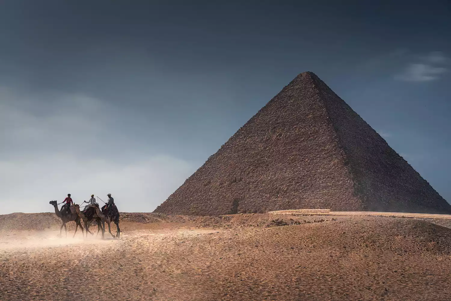 Its fame goes without saying; it's Egypt's golden signboard. The Giza Pyramids, located in Giza in the Nile Delta, were built between approximately 2575 and 2465 BC by three pharaohs of the Fourth Dynasty of Ancient Egypt, Khufu, Khafre, and Menkaure. They represent the most sophisticated example of ancient Egyptian pyramids. They primarily consist of the Pyramids of Khufu, Khafre, Menkaure, and the Great Sphinx, surrounded by numerous smaller pyramids.
