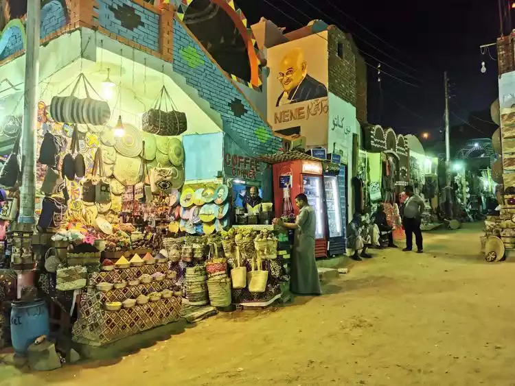 As night falls, the Nubian village market begins to light up. As for the goods, most of them are probably made in China, haha.