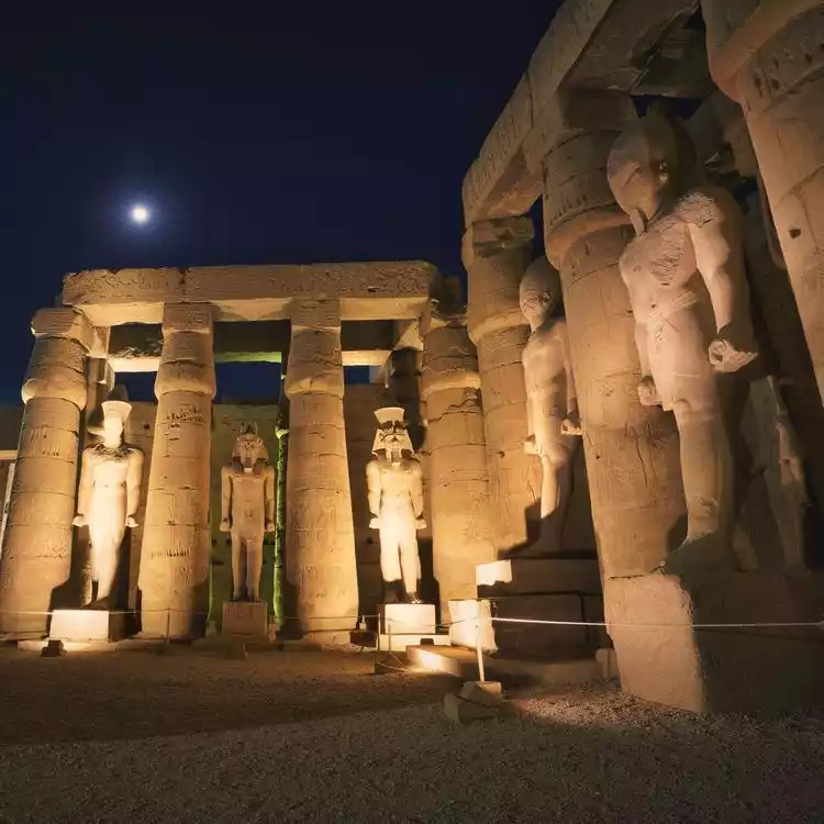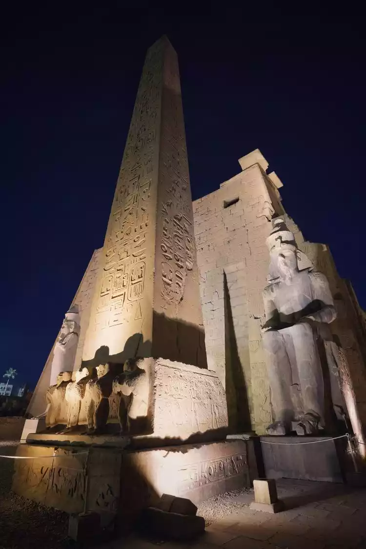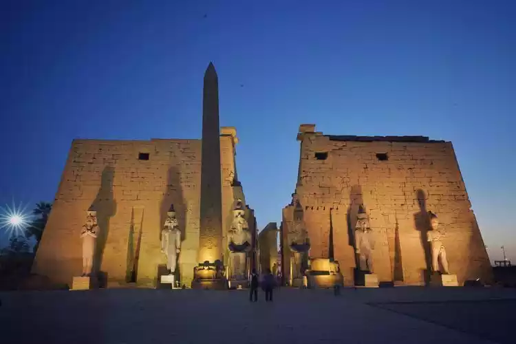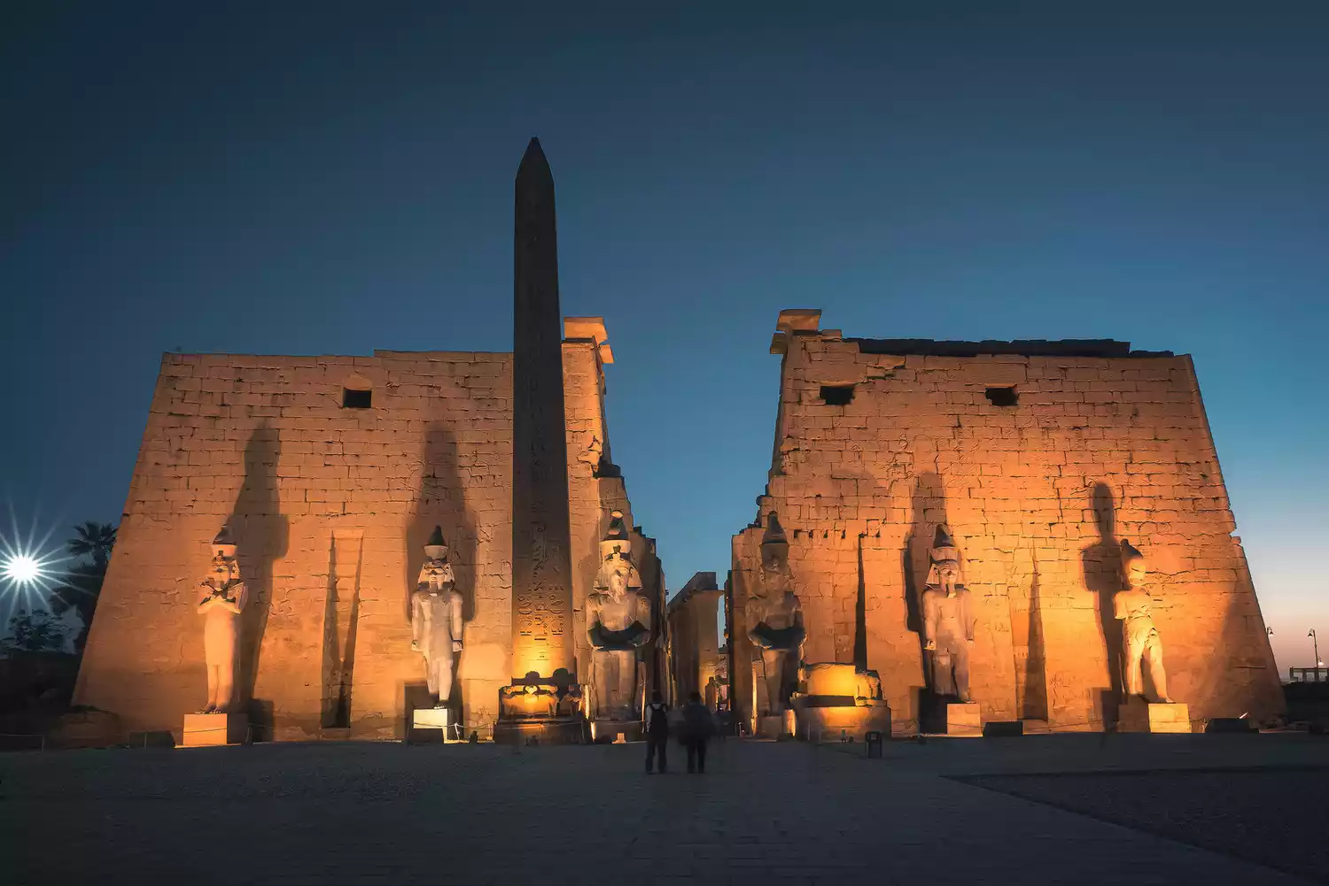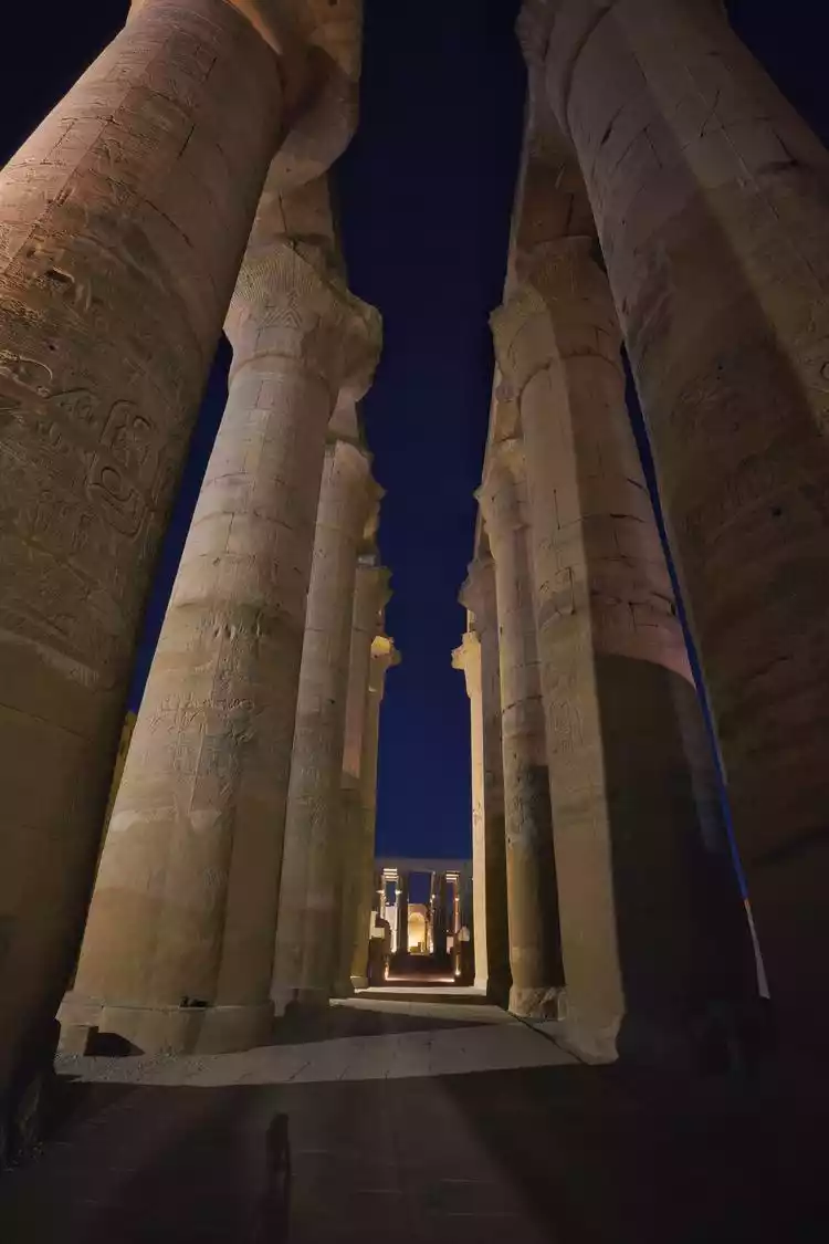 This is the only temple on our Egypt itinerary where you can photograph the night scene, and it is also the only temple you can enter with a tripod. Therefore, we usually enter the temple area before sunset and shoot the golden light before sunset. At that time, the temple ruins are as bright as if coated with a layer of gold. Then, after sunset, we can go to the temple gate to wait for the lights to come on, entering the blue hour, which is the best time to shoot.