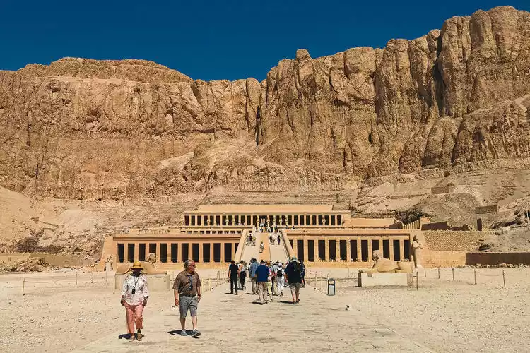 Hatshepsut is a Wu Zetian-like figure in ancient Egyptian history. She is the first female pharaoh to achieve immortality and the only woman to rule Egypt during the pharaonic era. The temple, with a history spanning over 3,500 years, consists of three floors and is recognized worldwide as a model of ancient architecture that seamlessly integrates natural landscapes. The murals within depict Hatshepsut offering sacrifices to various deities and highlight her significant achievements during her reign.