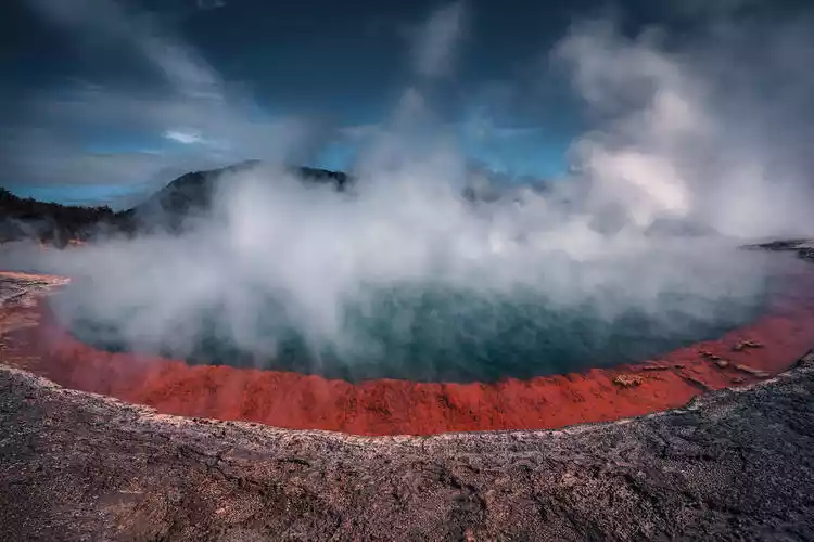 Smoke is rising from every corner of the park at all times. The most distinctive one is the hot spring called "Champagne Pool", which is 65 meters wide and has a very bright orange circle on the edge.