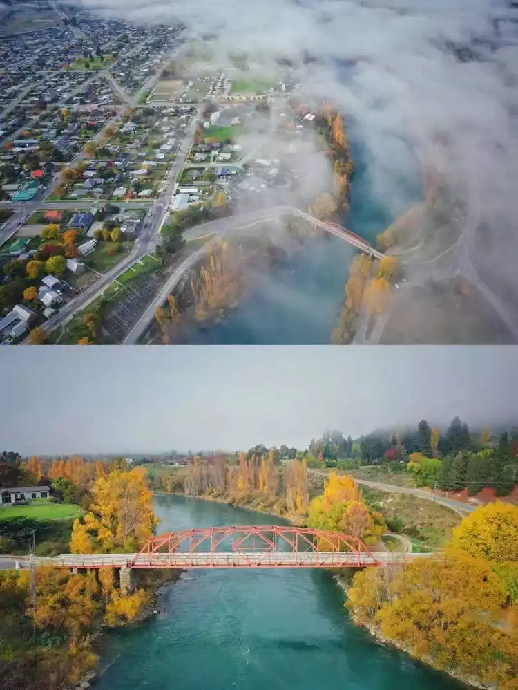 A small town on the way from Queenstown to the West Coast, it served as the filming location for the movie "Only Yun Knows." The town is adjacent to a dam, so weather permitting, morning mist is commonplace every day. This drone shot was taken.