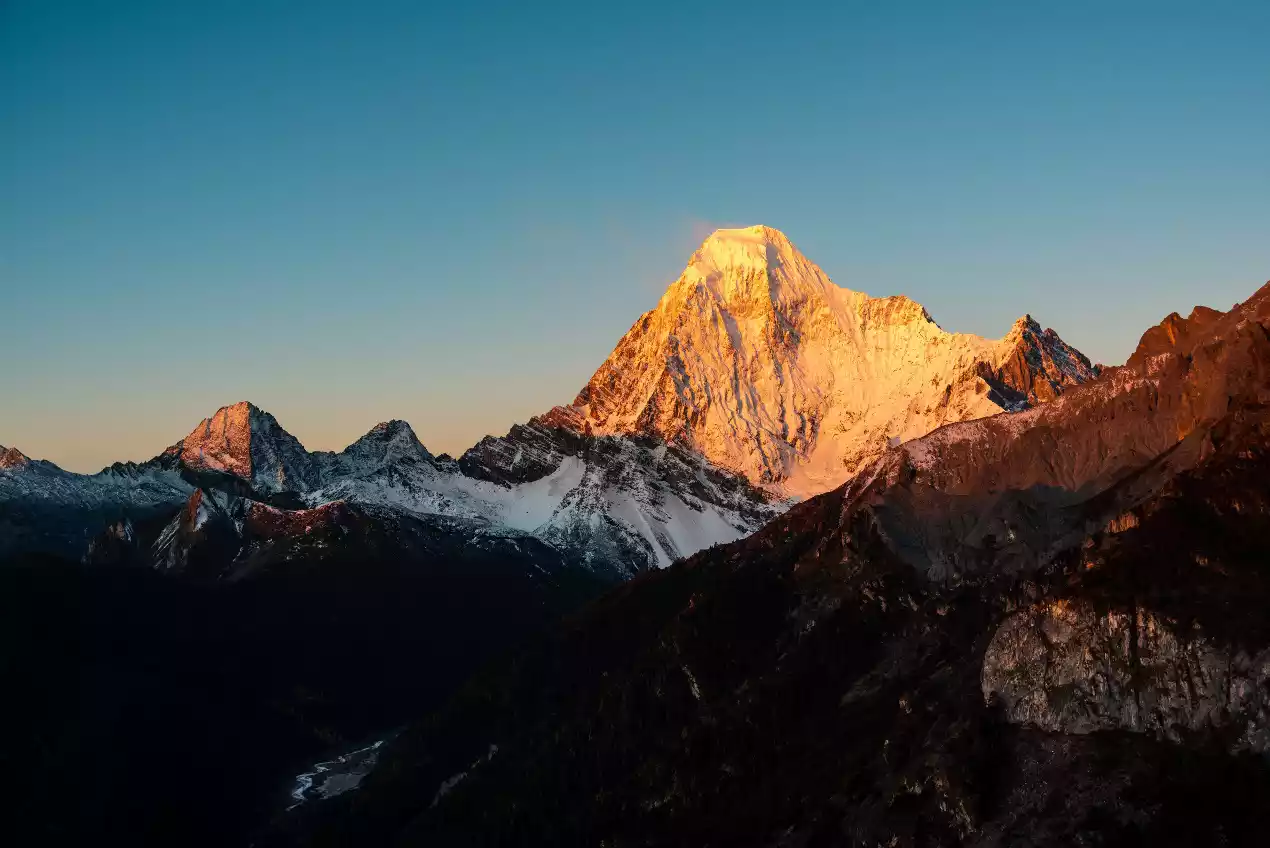 The King of Shu Mountains is also ranked second among the top ten most beautiful mountains in China. It is famous for the wonder of the Golden Mountain in the Sun. The sun shines on the top of Gongga Snow Mountain, and the snow-capped mountain sparkles in the sun, like a golden palace. The best time to see the Golden Mountain in the Sun is at the end of October and the beginning of November.