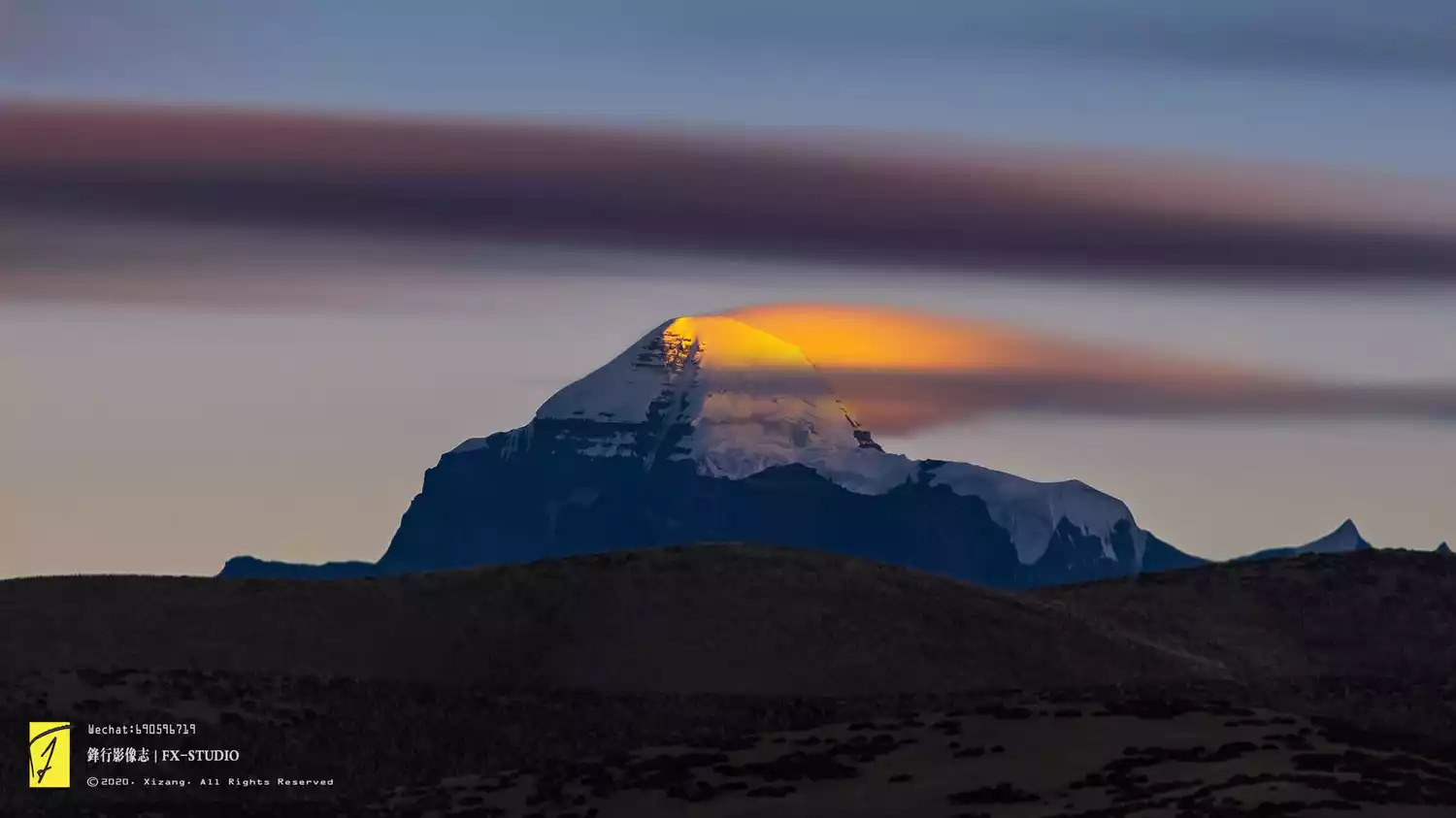 Known as the "King of Mountains," Mount Kailash, the center of the world, was selected by China National Geographic as one of China's ten most beautiful mountains. The towering mountain is majestic and surrounded by unique peaks. Its main peak, shaped like a domed pyramid, is capped with snow. Its four walls are perfectly symmetrical, and its body, like a crystal structure, is often shrouded in white clouds, creating a truly breathtaking sight. At sunrise, Mount Kailash is bathed in golden light, resembling a golden temple. The scene is truly breathtaking.