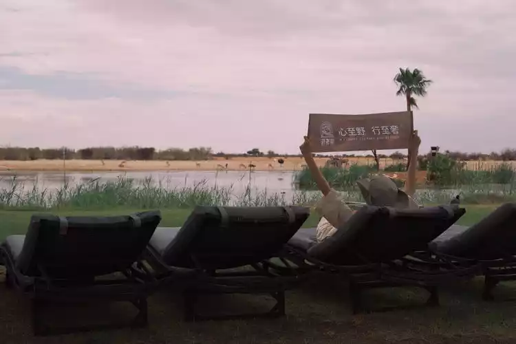 The accommodation and dining areas at Cheetah Manor are fantastic. It feels like a vacation to sit on a lounge chair and watch the animals stroll leisurely by the pond.