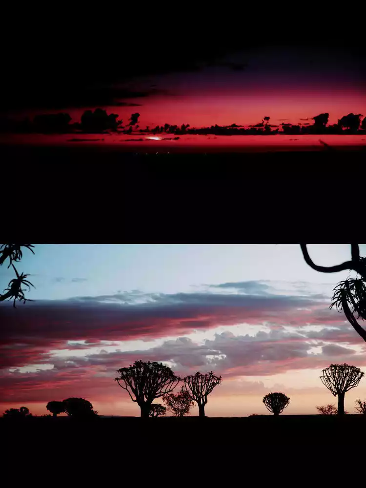 The edge of the Namibian Desert, where it almost never rains, with less than 60mm of precipitation annually, has given rise to the quiver tree, a species that can reach up to five meters tall and be around 200 years old.
