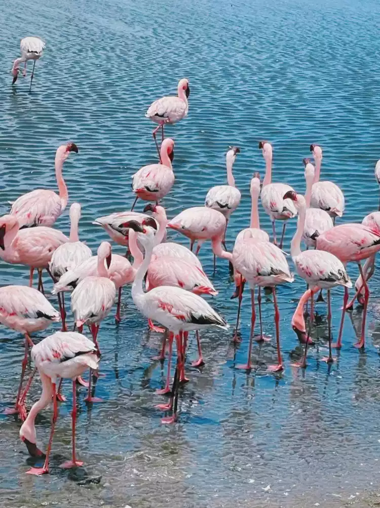 Walvis Bay is also home to a large number of sea lions and various seabirds, such as pelicans and seagulls. If you're lucky, you might even spot a flamingo! This flamingo colony is home to a vast flock, making it one of the largest in Africa. The graceful beauty of the flamingos attracts many visitors, who are careful not to disturb the birds.