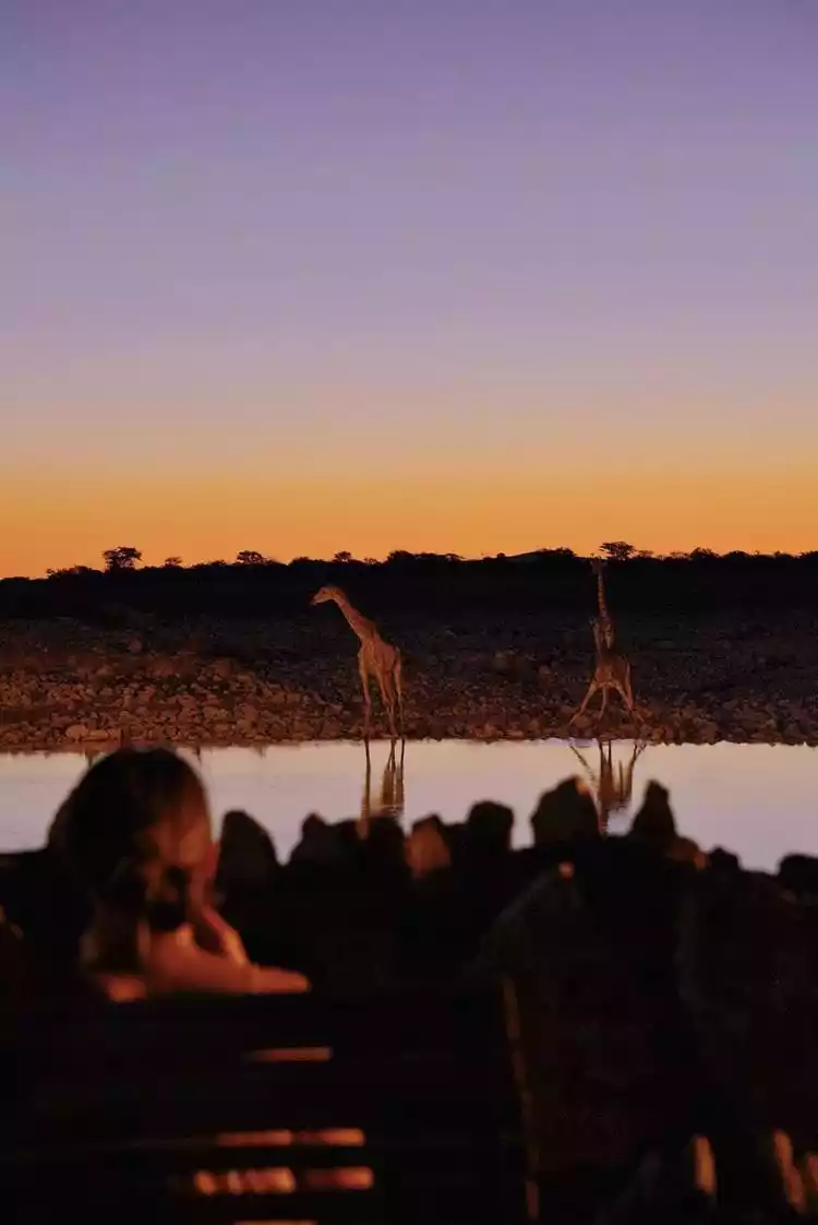 Upon arrival, we'll tour the national park by truck, where we'll get up close and personal with hundreds of rare and exotic animals. Arrive at camp around dusk and head to the camp's signature "pond" to admire the unique sunset over the basin, spotting the various animals that come to drink.