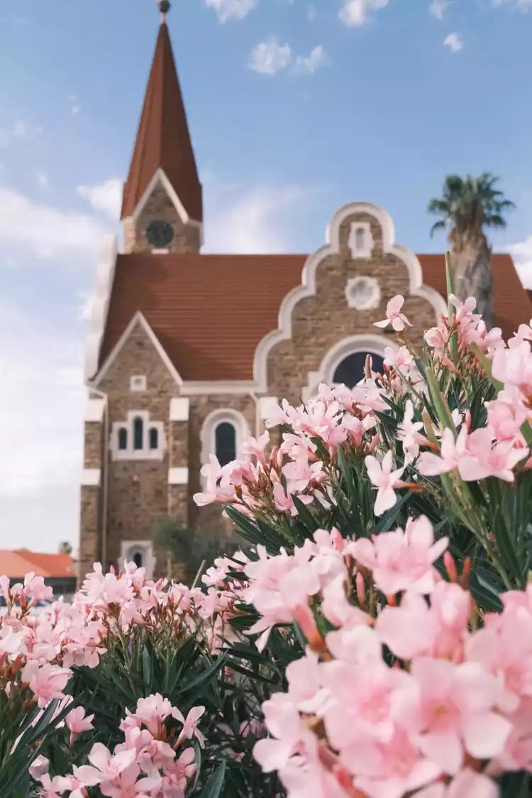 Namibia gained independence from South Africa in 1990. Its capital city, Windhoek, is filled with rich European style amidst clusters of flowers.