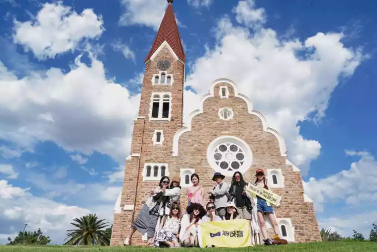 After arriving that afternoon, the guide took us on a city walk to the landmark building "Christians Church" in the city center, and visited the city garden green space next to the church, which is a rare oasis in Namibia.