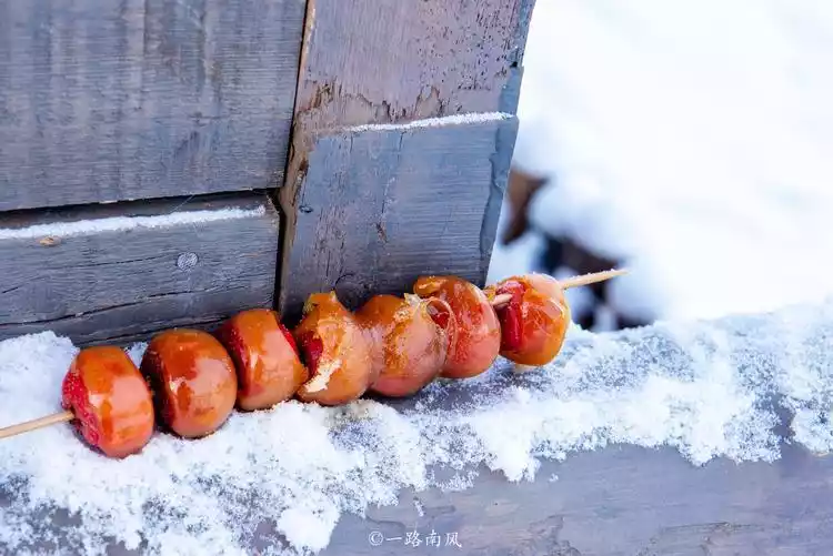 Candied haws is a very northern thing. First, string the ingredients together, then roll them quickly in the syrup, then let the rock sugar solidify, and continue to wait until it's done.
