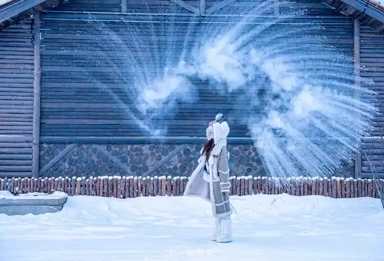 Ding, ding, ding! Of course, when you're in this freezing cold place, you have to experience the water-to-ice trick! First, boil several pots of water. Then, cast them into the air in an arc across the open snowy landscape. The water instantly transforms into snow powder upon contact with the frigid air. The shapes of the snowflakes vary slightly depending on the speed, rhythm, and gestures, but the experience is thrilling regardless. We tried again and again, throwing several pots of water.