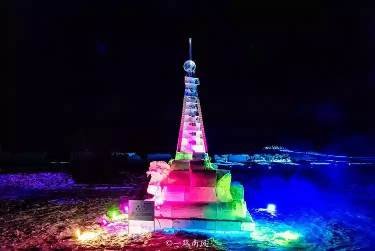 The park is dotted with ice and snow sculptures, but the most impressive are the Cold Pole ice sculptures and the China Cold Pole Village snow sculptures. Shaped like a thermometer, the Cold Pole ice sculptures are exquisitely crafted during the day and vibrantly colored at night, making them a popular online attraction within the park.