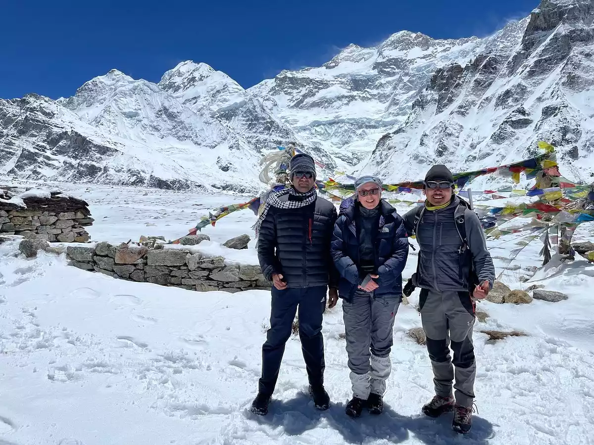 Kanchenjunga, which means "five huge snow treasures" in Tibetan, is composed of five peaks and the main peak (8586m) is the third highest peak in the world .