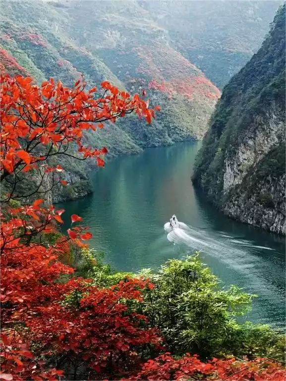 The gorge walls, draped in crimson leaves from the forest above, and the cool weather give you a compelling reason to visit! Autumn is the peak of the Three Gorges, and you can enjoy the beautiful crimson leaves from a variety of angles by boat, on foot, or by car.