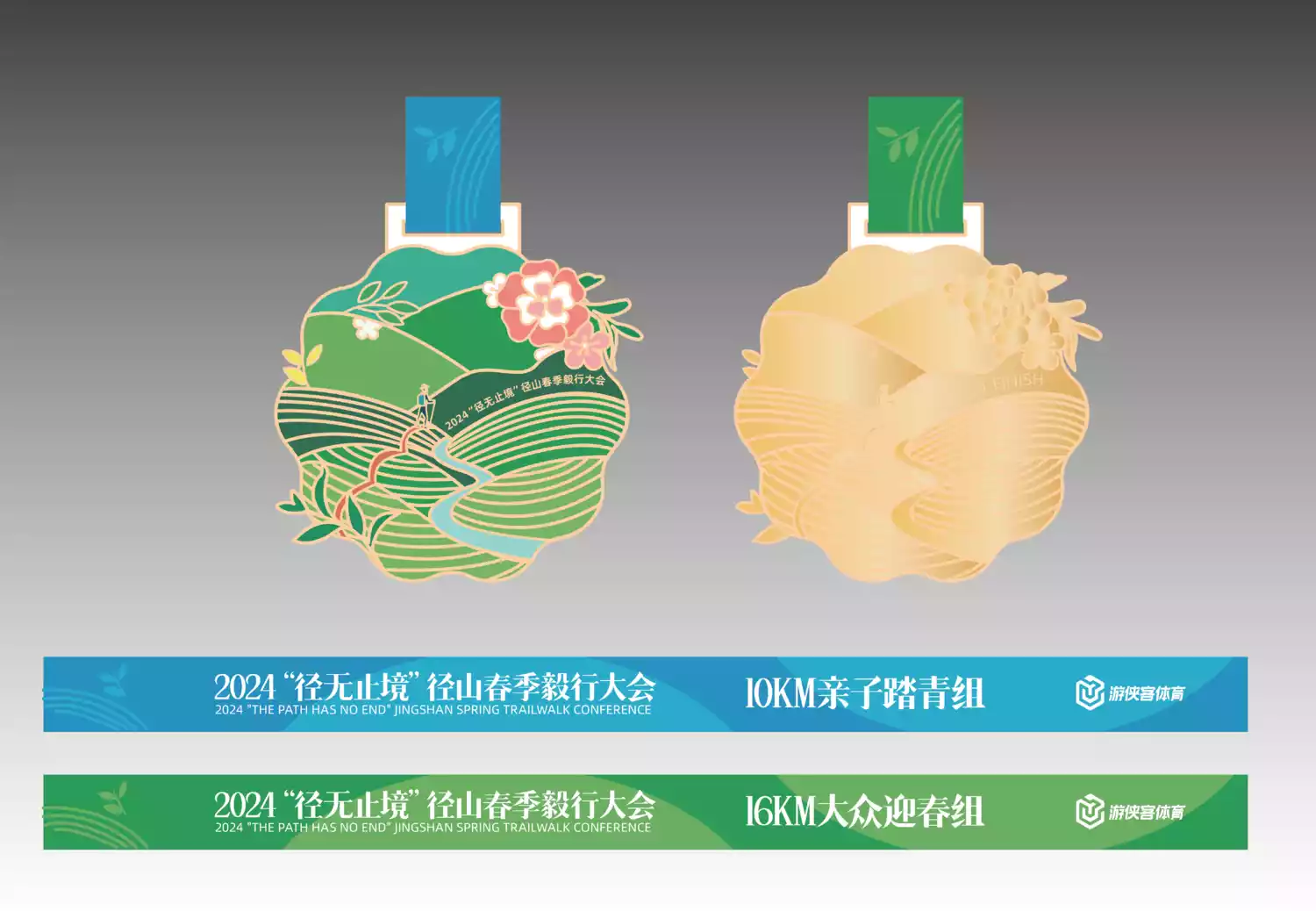 The secrets of the Jingshan Trailwalk finisher medal are revealed. It combines the classic April "Tea Mountain" with the spring "flower viewing" and integrates the essence of the "Shuangxi Greenway" and "Tiaoxi" sections to stroll along the most beautiful greenways, enjoy the good spring time, and see the green Zen tea in April. When you finish the race, the heavy medal hanging around your neck will bring you an extra joy and satisfaction that is unique to you!