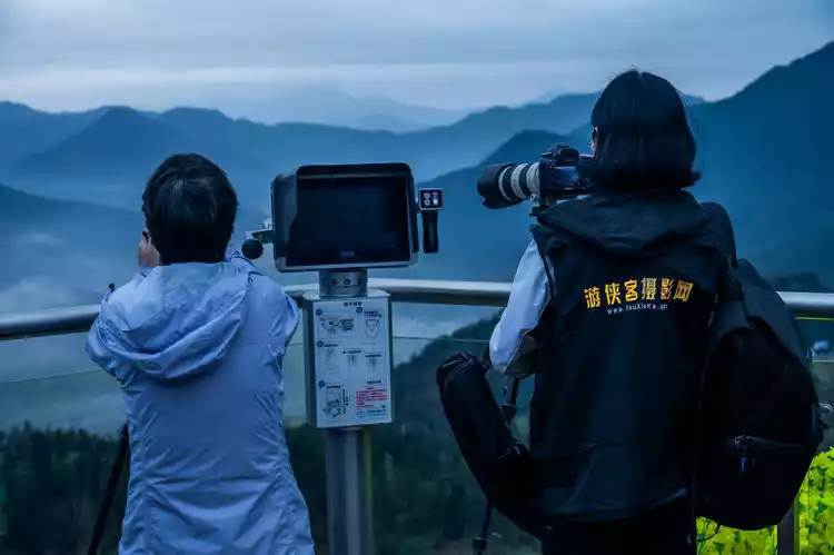 After taking pictures of the blue sea of clouds, there was no sunrise or sunny day. The clouds in the sky acted as a large soft light shield for the sun. Under the guidance of the photography leader, we found a suitable camera position, and the photographers interacted with each other to create portraits.