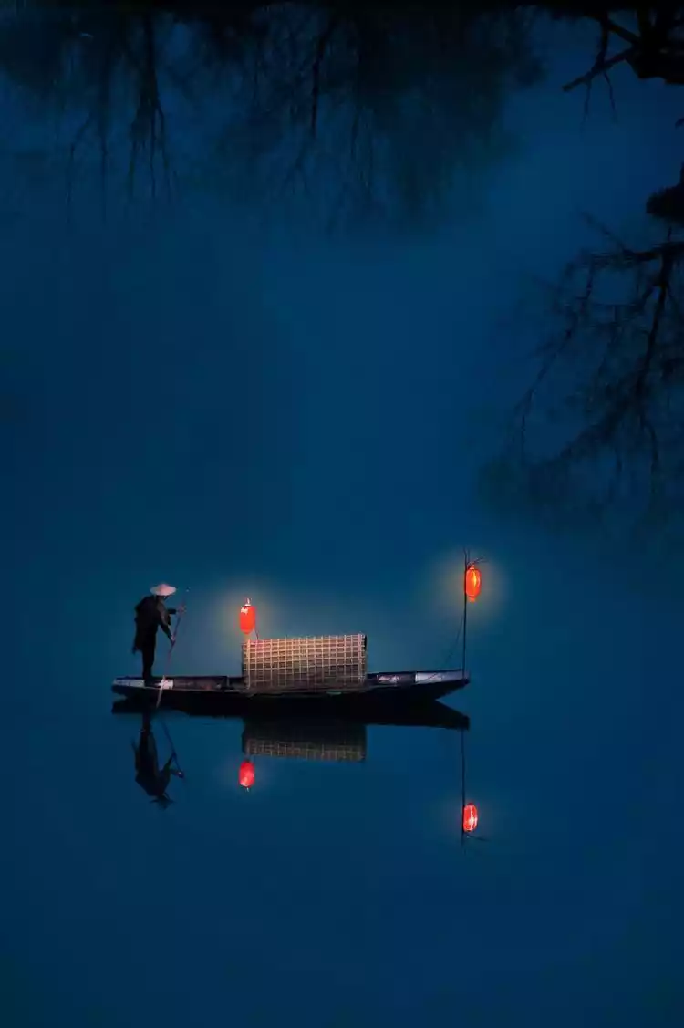 In the blue hour before sunrise, the light is relatively weak and the fishing boats are still moving slowly on the water. Therefore, if you want to shoot at this time, it is recommended to use a tripod, open the aperture to the maximum, and keep the shutter speed to 1/80 or even faster. If it is still underexposed, you can only increase the ISO to compensate.