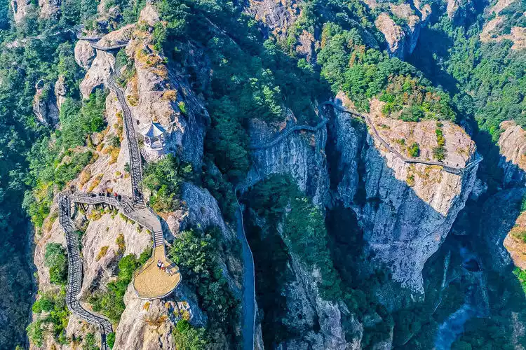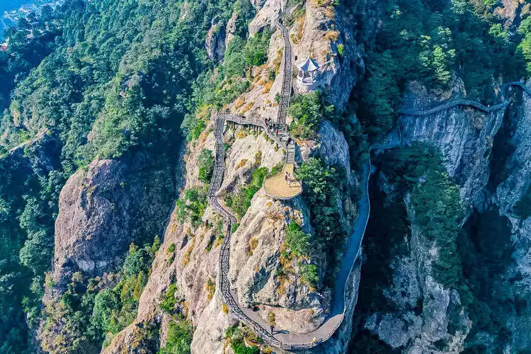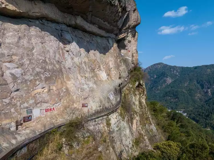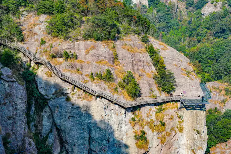 Going further, you will reach the Woyun Plank Road, a newly developed medium- and high-altitude slow-walking trail in Yandang Mountain, with a total length of 1.3 kilometers. It changes the traditional "viewing the peaks from the valley bottom" tour mode of Yandang Mountain and connects the two major scenic spots of Fangdong and Lingyan.