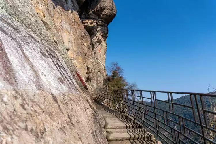 Going along the plank road, you will come across the Knife Cave, Yuntian Bridge, Hanging Golden Bell, Plum Blossom Cave, Juxian Pavilion and other scenic spots in turn.