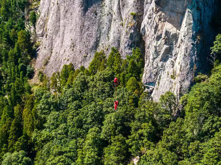 The highlight of Lingyan Scenic Area is the flying boat performance. This unique performance involves a rope stretched across the peaks of Tianzhu Peak and Zhanqi Peak, reaching a height of 200 meters and a width of over 200 meters. The performers perform somersaults and soaring maneuvers on the rope, a truly unique feat. Wandering through the forest, one is enveloped in a tranquil silence, a stillness that feels like entering a different world.