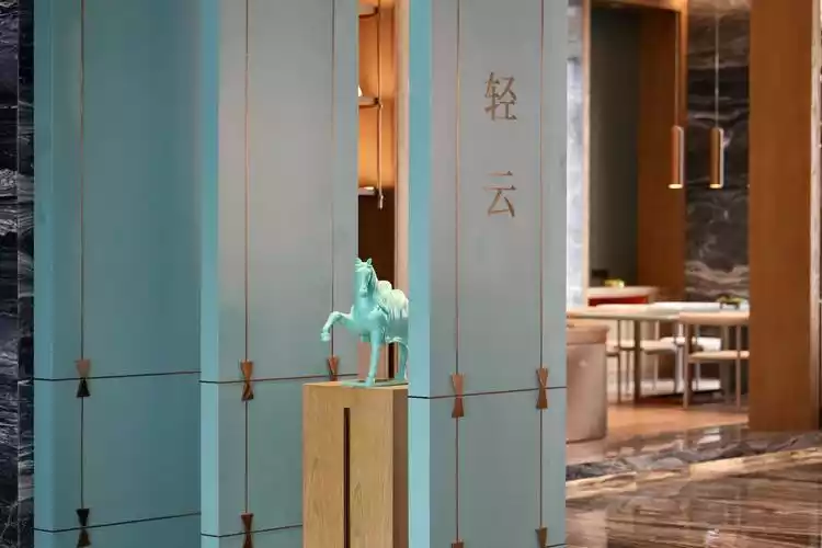 This time, we stayed at the Huamao Chunsong Hotel, right next to the high-speed rail station. My parents loved it, not only because of its beautiful appearance but also because of the attentive service, which made us feel so warm. Walking into the hotel lobby, overhead was a dazzling light-woven River Map, and the ground was illuminated by the Luoshu, a scripture reflected in the sky. "From the River came the map, from the Luo came the book, and the sages followed it." Standing in the center, it was as if you could feel the passage of time.