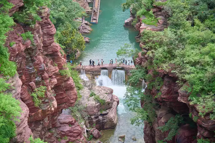 Hongshi Gorge is a rare Danxia landform in northern China, where the rare red rocks and gurgling water intertwine beautifully. Almost everyone who visits Yuntaishan will visit Hongshi Gorge.