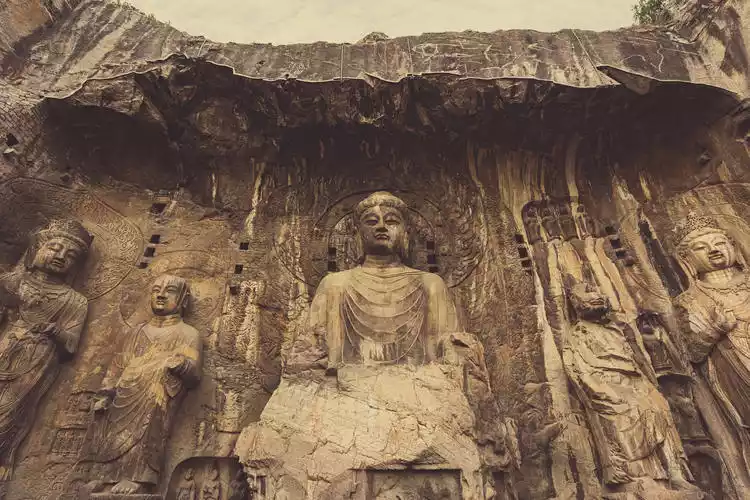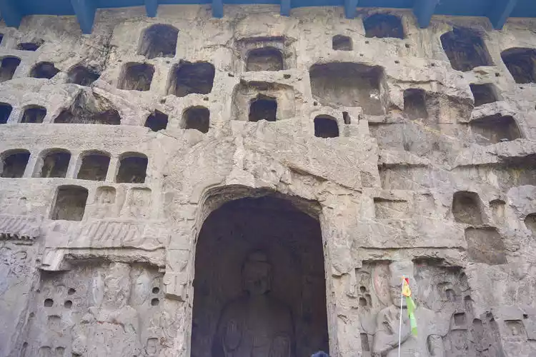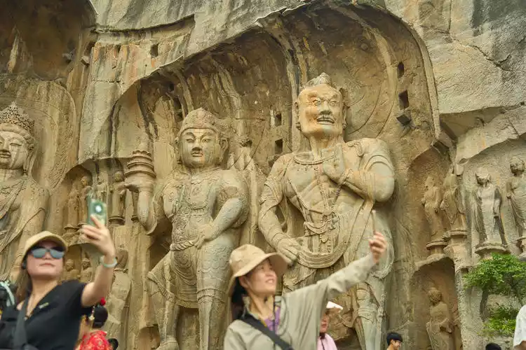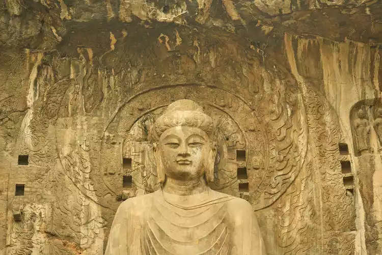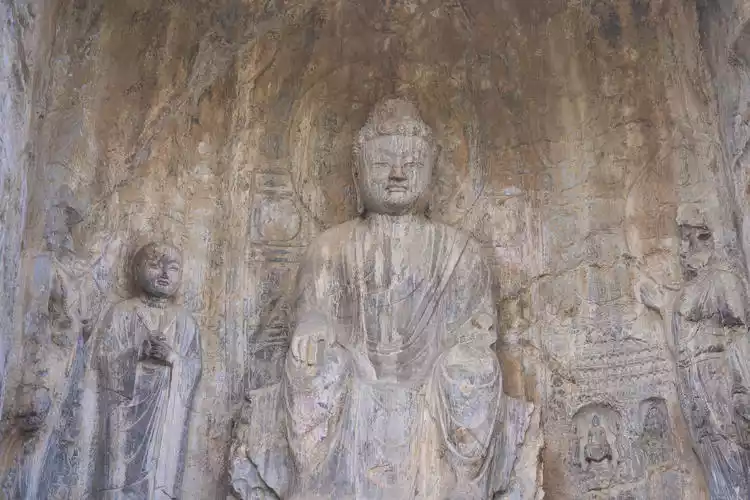 The Tang Dynasty-era Fengxian Temple's Vairocana statue niche is the largest, most imposing, and boasts the most exquisite carvings. The Vairocana Buddha stands 17.14 meters tall, with a 4-meter-high head and 1.9-meter-long ears, making it the largest Buddha statue at Longmen Grottoes.