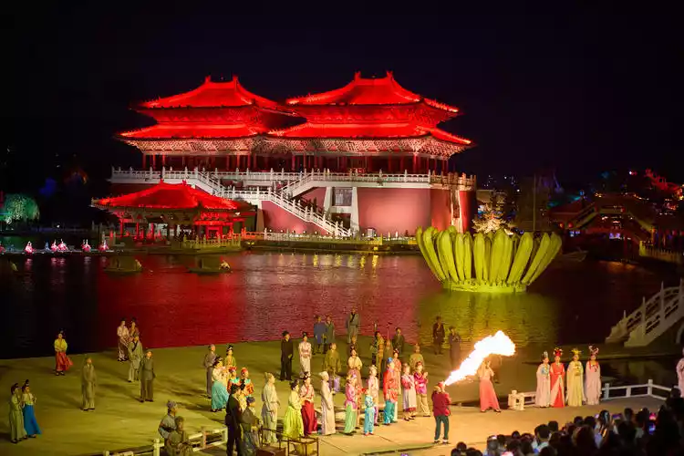 The park boasts a rich variety of performances, both in number and variety, making it a truly unique and exceptional attraction in China. "Yue Fei Challenges the Young King of Liang" is highly recommended; it's well worth a visit. Other unique performances include water puppetry, lion dances, Lord Bao's inspection of the Bian River canal, the "Resurrection" from "The Adventures of the Magic Horse," and Miss Wang's Ball-Throwing.