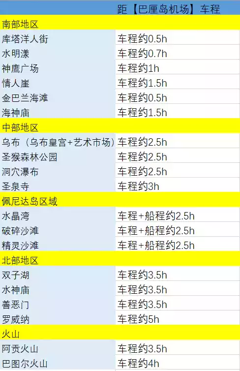 Don’t panic, I have thoughtfully compiled a guide for Bali attractions for everyone. Taking Bali Airport as the starting point, the approximate driving time to each attraction (assuming there is no traffic jam).